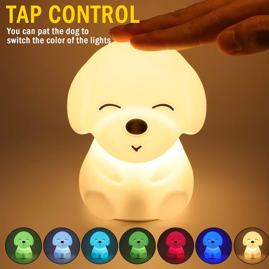 Cute Dog Kids Night Light, Portable Animal Lamp for Bedroom, Color Changing Lights with Touch Control,Portable,Battery Operated,Rechargeable