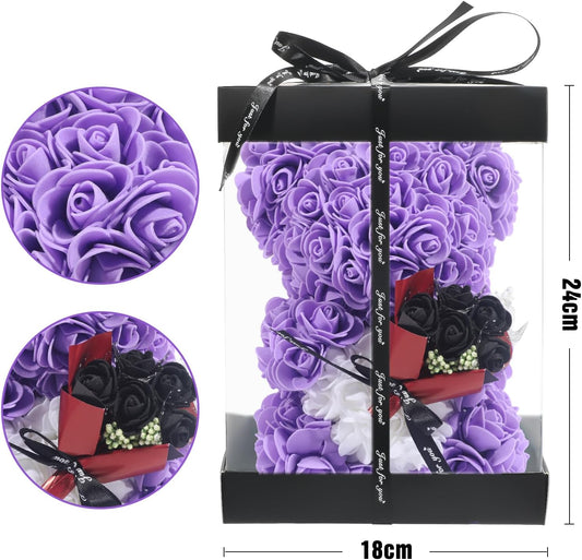 Rose Bear, Rose Teddy Bear for Wife, Girlfriend Birthday Gifts, Rose Flower Bear Gifts for Girlfriend, Mom, Wife, Women (White)